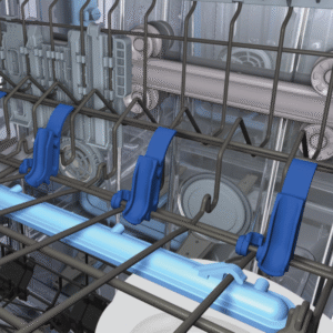 Targetwash: Giàn rửa thứ hai được trang bị các vòi phun phụ đặc biệt, có nhiệm vụ phun rửa trực tiếp vào chai lọ được cố định trên các giá kẹp, giúp làm sạch một cách chủ động và hiệu quả.
